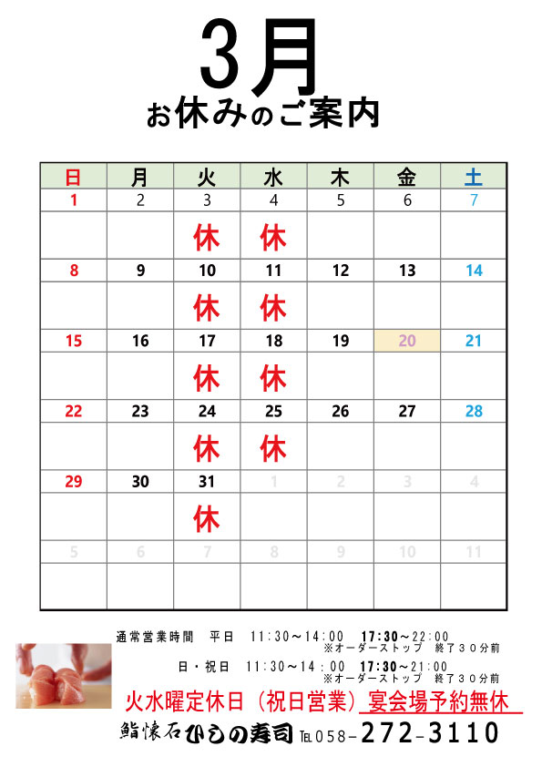 2023/03/244月のお休み(ゴールデンウイーク) |